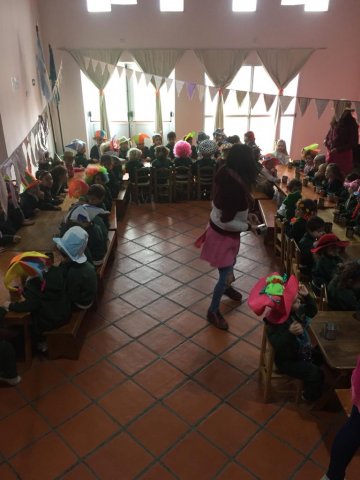 Durante esta semana los niños escucharon cuentos, jugaron carreras de embolsados, de emboque, camino de pisaditas y compartieron un picnic con sombreros y collares.