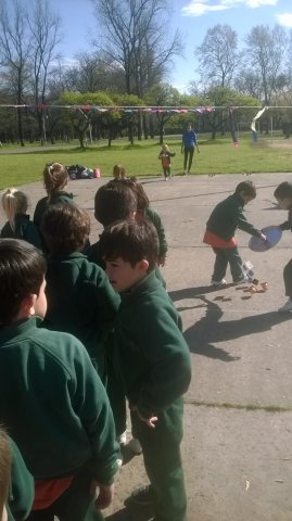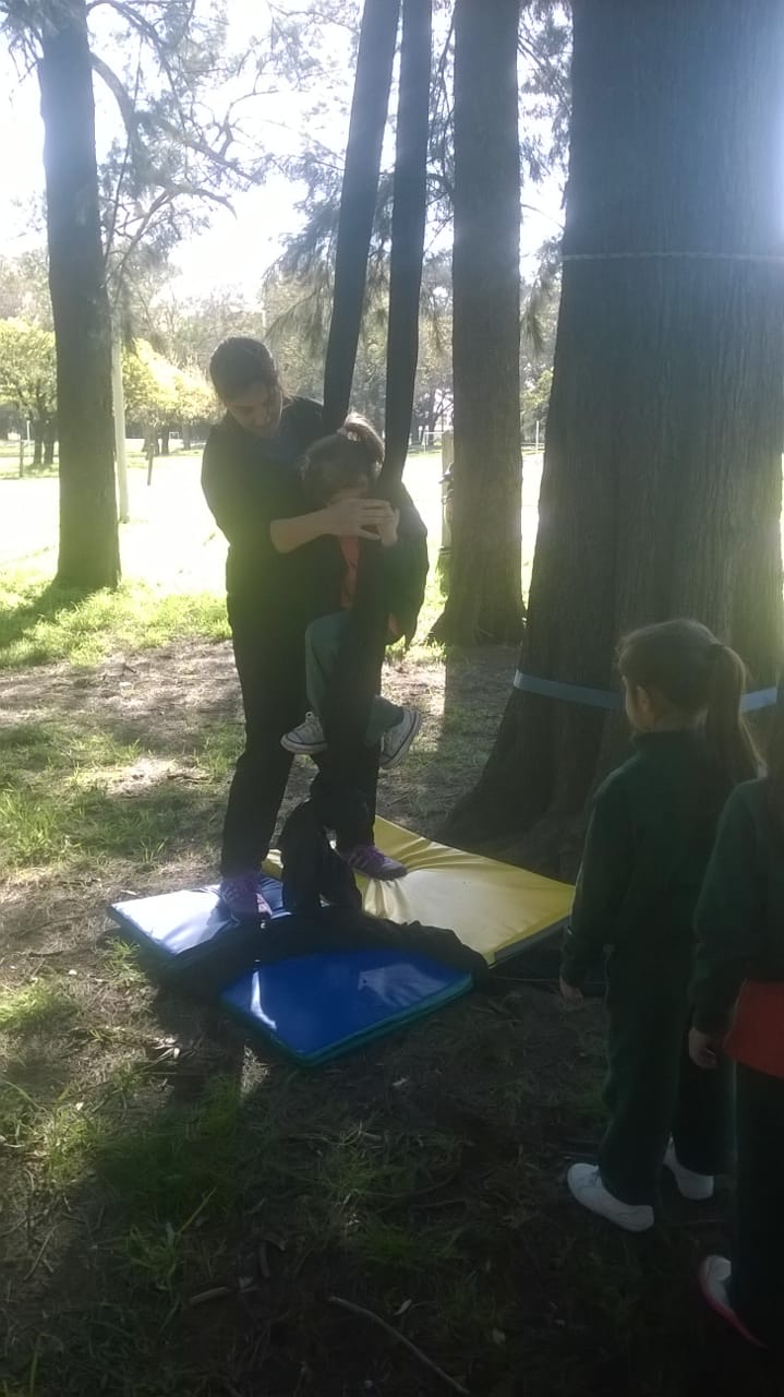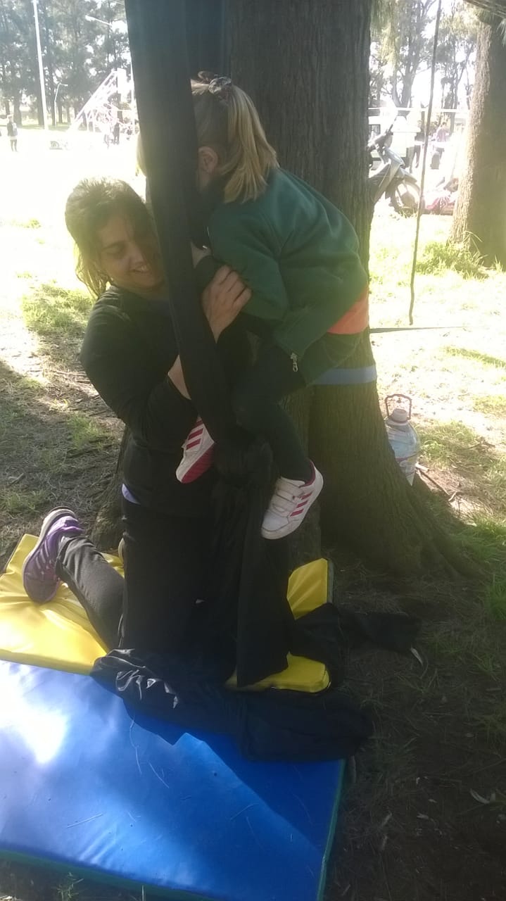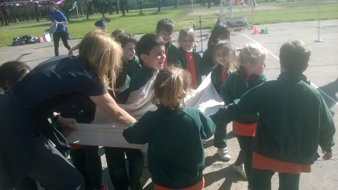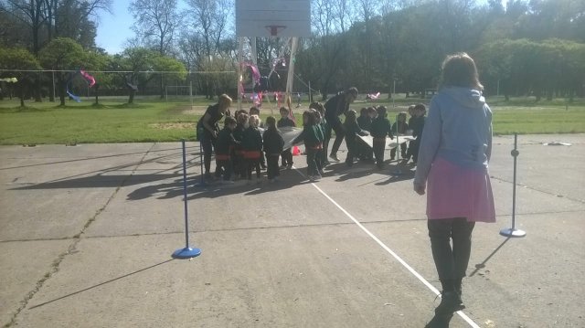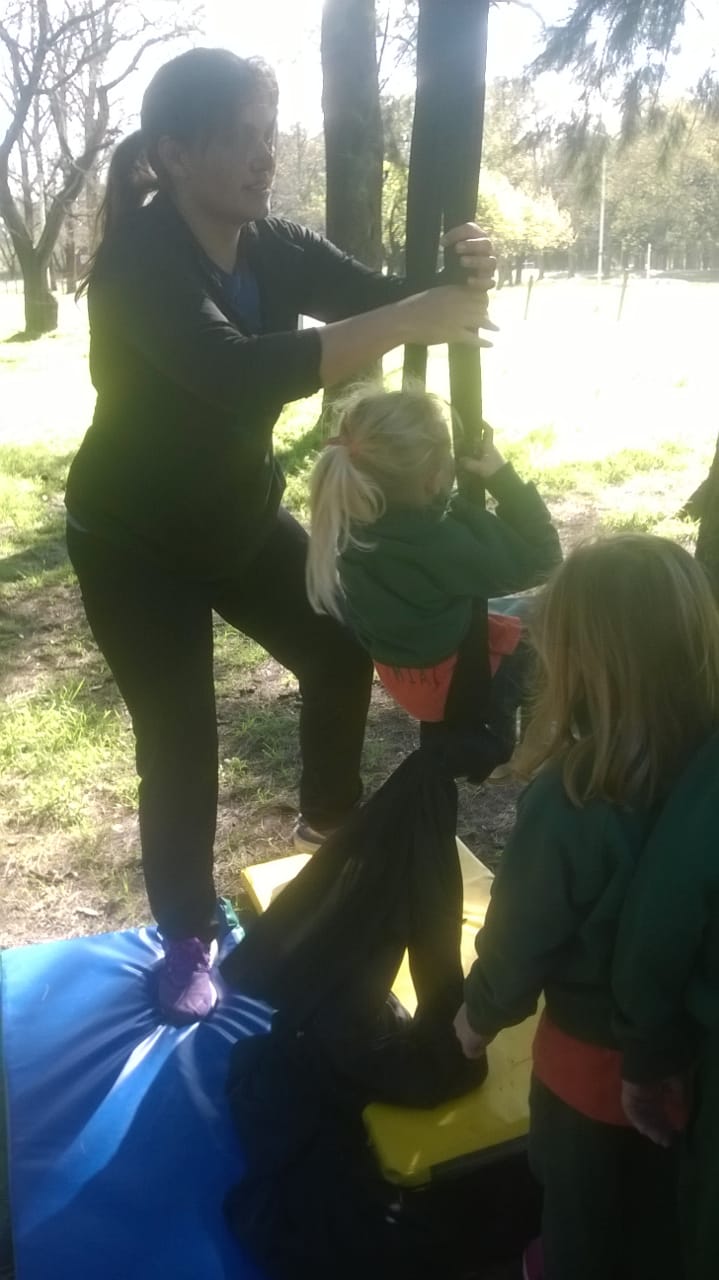 Los niños eran invitados a recorrer un circuito con 8 estaciones en los que se desarrollaban diferentes juegos que apuntaban a ejercitar el equilibrio, la coordinación y la fuerza.