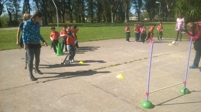 Los niños eran invitados a recorrer un circuito con 8 estaciones en los que se desarrollaban diferentes juegos que apuntaban a ejercitar el equilibrio, la coordinación y la fuerza.