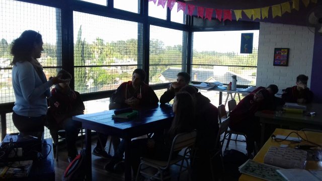 Los alumnos de sexto año, en la materia Trabajo y Ciudadanía, compartiendo una charla sobre Responsabilidad y Convivencia en el Trabajo con el profesor Sebastián Tacconi.