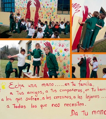 Mural "Manos que ayudan" pintado por los alumnos.