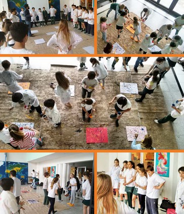 Pintando con las técnicas del pintor Jackson Pollock en la clase de arte
