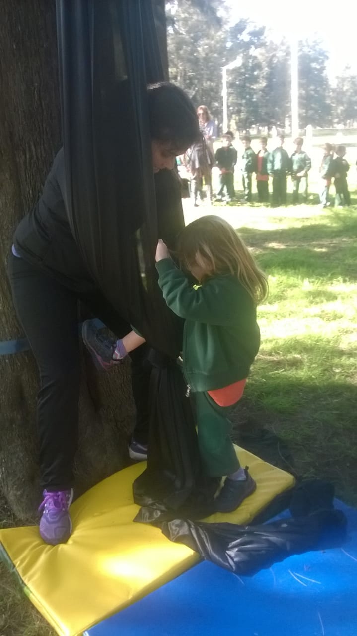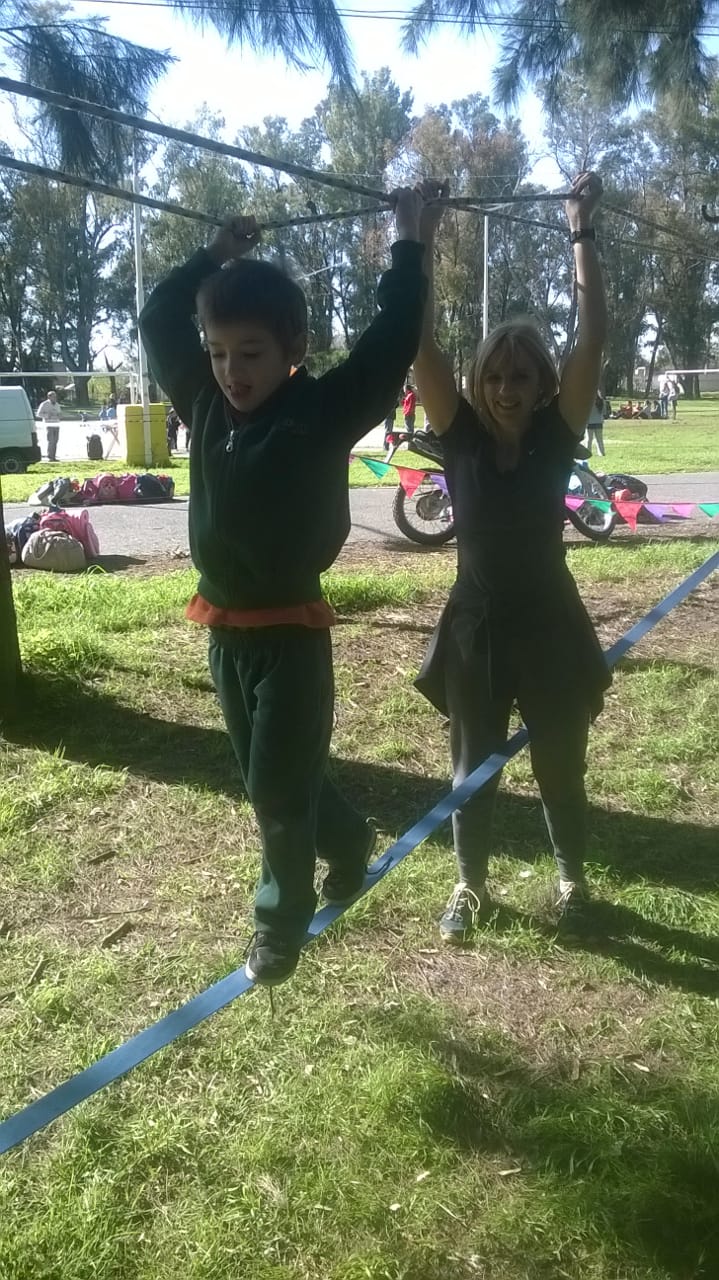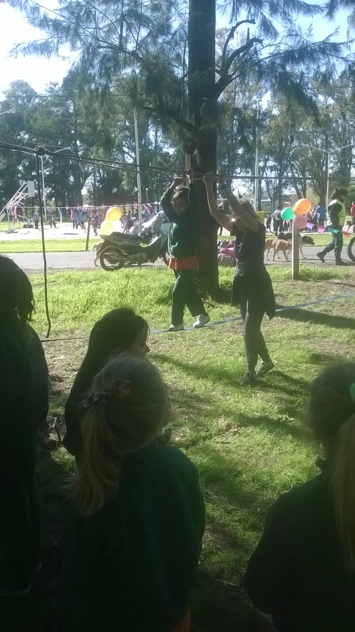 Los niños eran invitados a recorrer un circuito con 8 estaciones en los que se desarrollaban diferentes juegos que apuntaban a ejercitar el equilibrio, la coordinación y la fuerza.